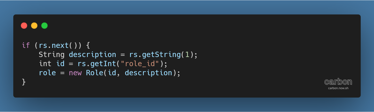 - DB 접속 정보는 계속 사용되므로 getRole 메서드 외부에 아예 변수로 저장해놓으면 편리
