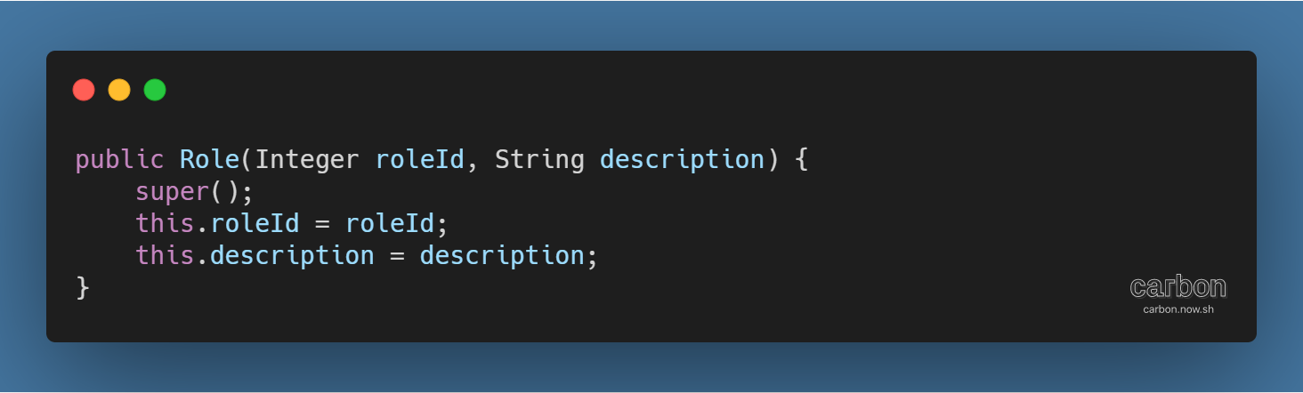 - Role 클래스 생성: 데이터베이스에서 정보를 넣거나 꺼내와 저장하는 기능
