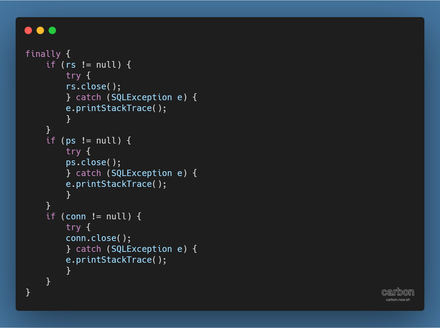 - conn, ps, rs 객체는 자신의 역할을 수행한 뒤에 닫아줘야 함