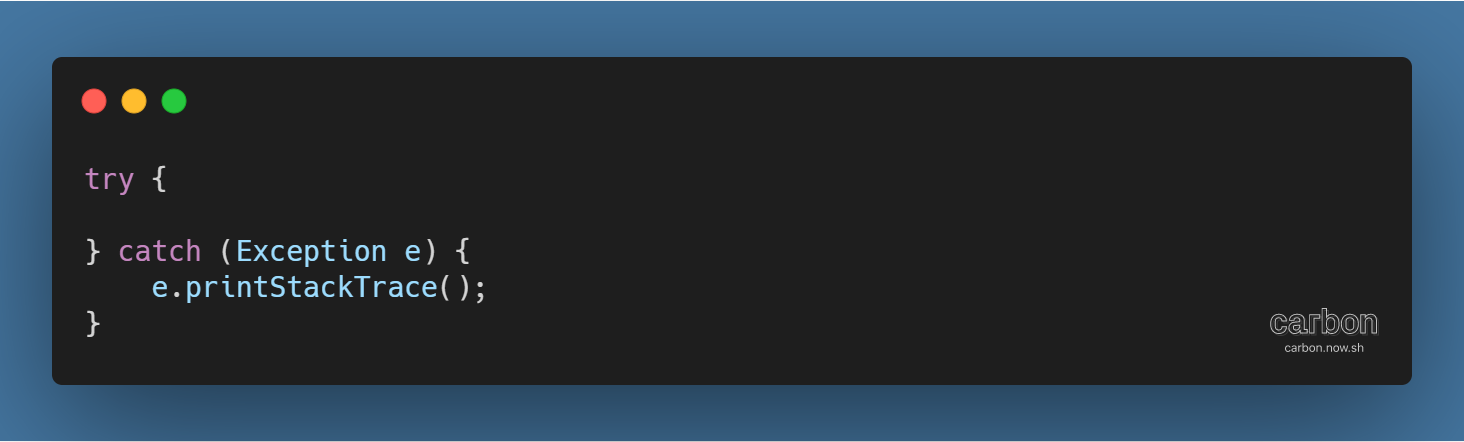 - try ... catch 구문으로 기본 구조를 작성해 객체 선언 뒤에 입력