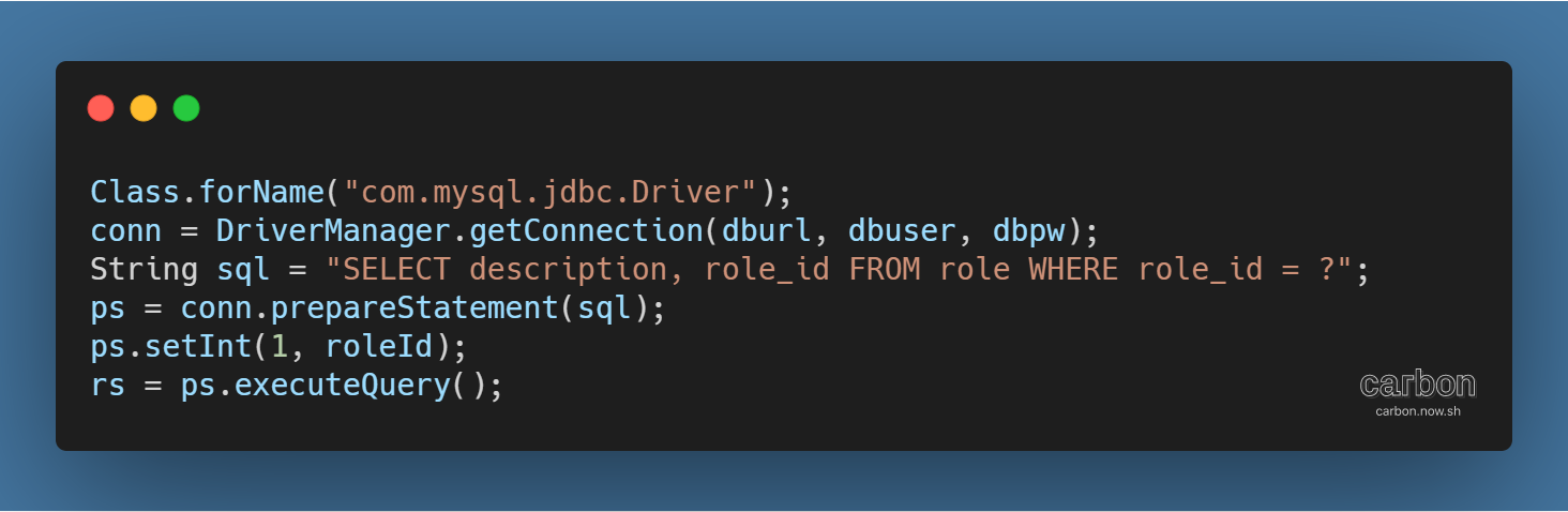 - 쿼리문 내 ?의 역할: 쿼리문이 저장된 변수 전체를 수정하지 않고 ? 부분만 수정할 수 있게 해줌