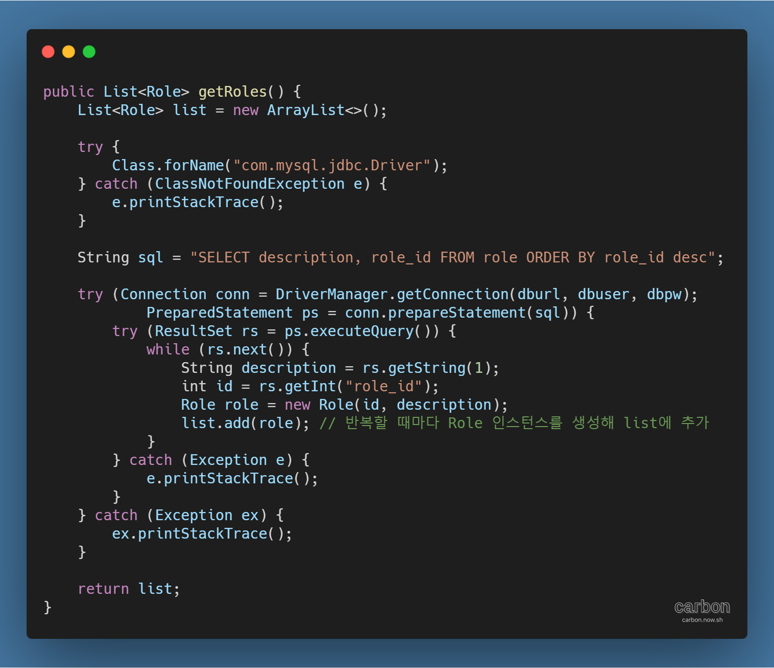 - 메서드의 실행 결과를 List<Role> 타입의 변수에 저장