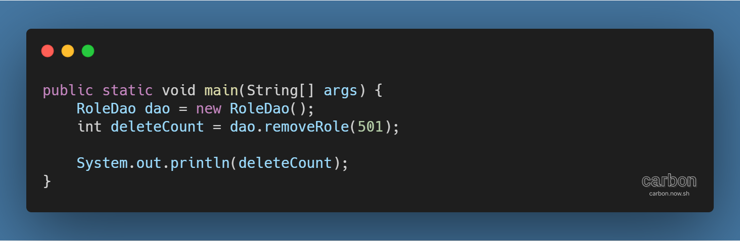 - 생성된 Role 객체를 인자로 받는 RoleDao 객체의 addRole( ) 메서드 실행