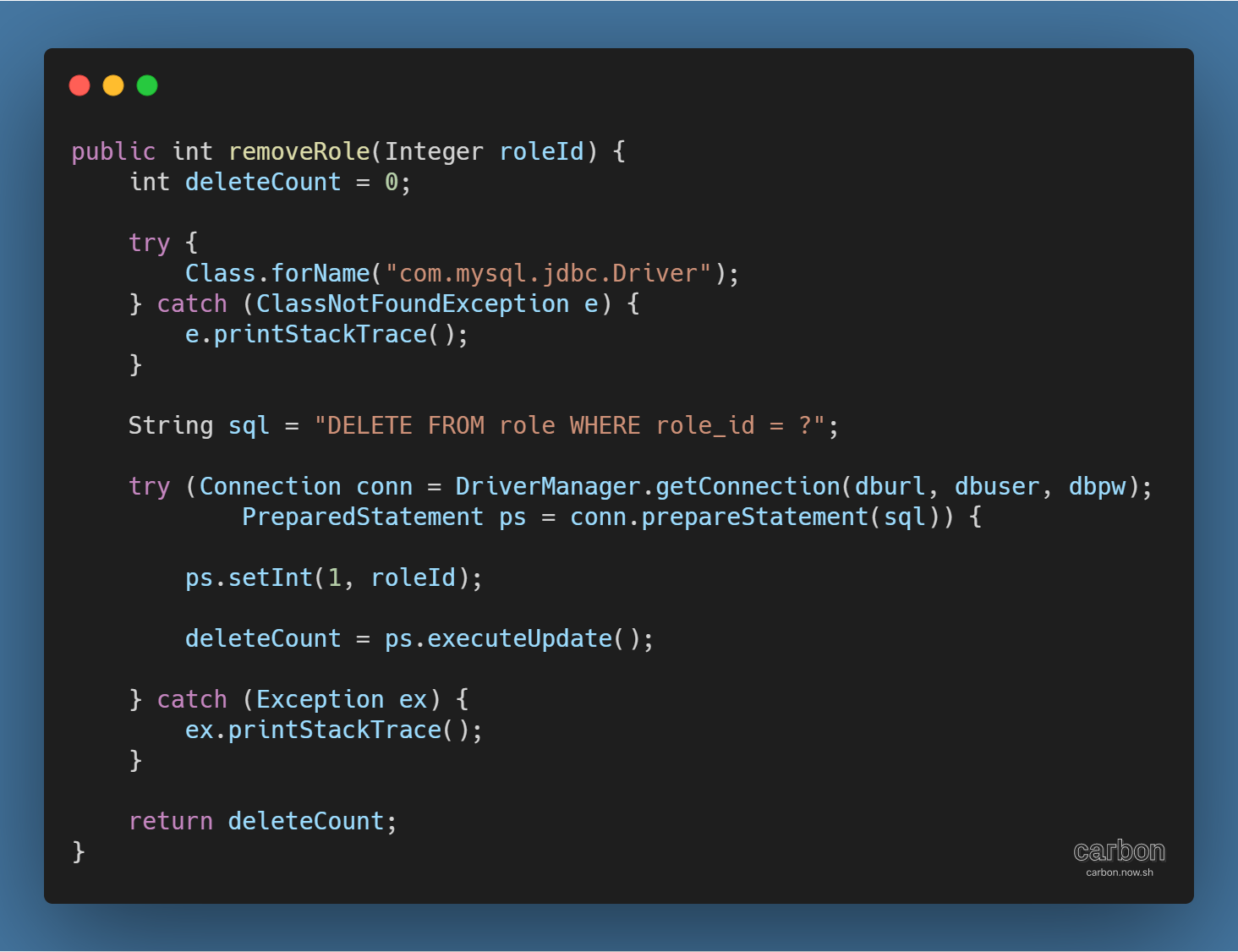 - try-with-resource 구문을 활용해 Connection 객체와 PreparedStatement 객체가 자동으로 닫히도록 처리