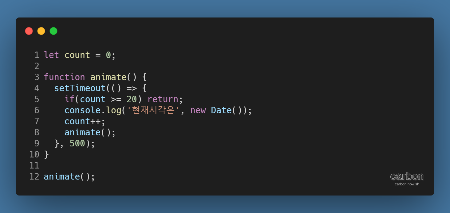 - 재귀적으로 호출하는 방식으로 애니메이션을 구현할 수 있음
