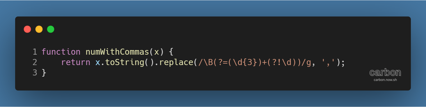 - 숫자 x를 3자리 단위로 ,(쉼표) 구분하여 반환하는 함수