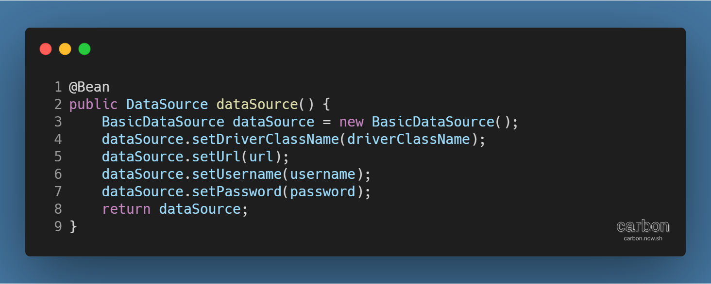 - @Bean으로 DataSource 객체 등록