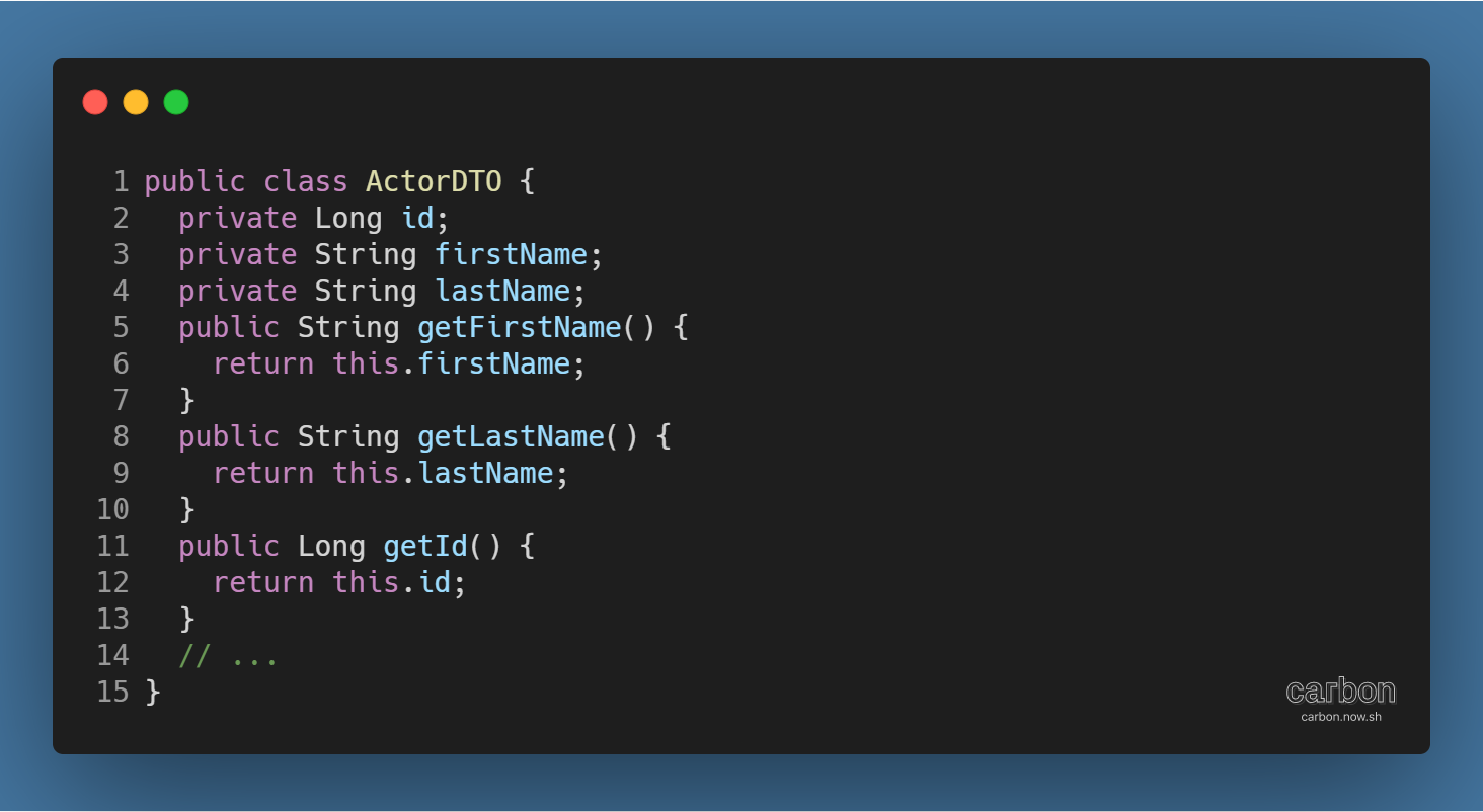 - 일반적인 DTO는 순수한 데이터 객체로, 별도의 로직을 갖지 않음