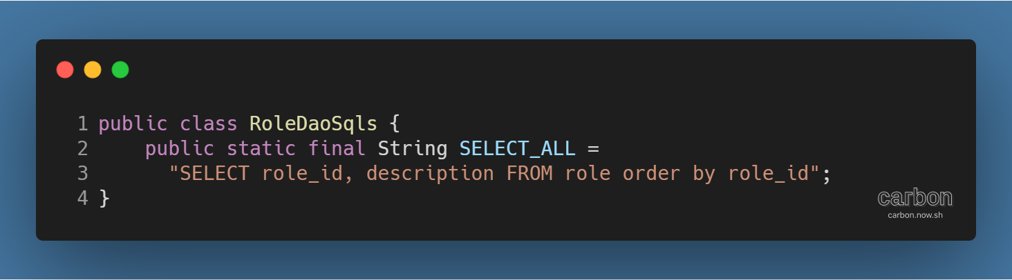 - RoleDaoSqls: 쿼리문 정보를 담은 클래스