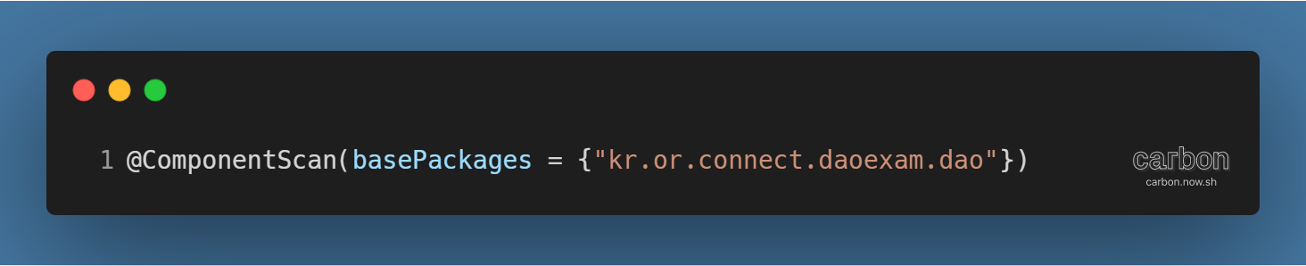 - { } 중괄호를 이용하면 복수의 패키지를 대상으로도 ComponentScan 연결 가능