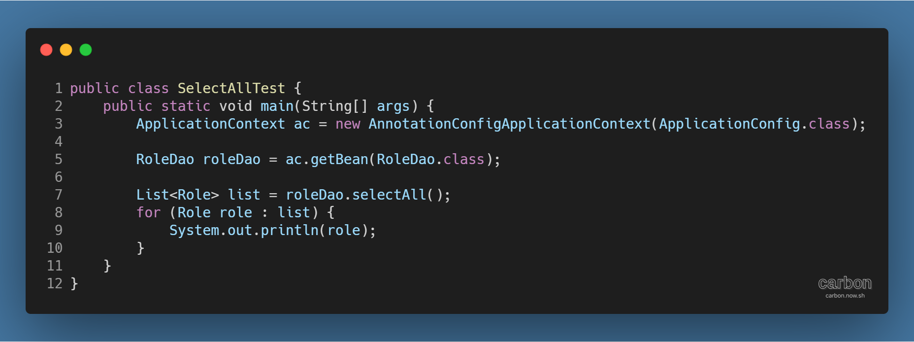 - getBean( ) 메서드로 ApplicationContext에서 RoleDao 객체를 얻어냄