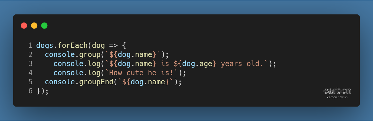 - ※ group 대신 groupCollapse를 사용하면 그룹이 접힌 채로 콘솔에 표시됨