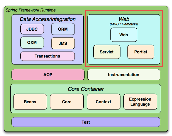 - Spring Module 중 Web Module이 Model 2 아키텍쳐의 발전형태 중 하나이며, Spring MVC라고 불림