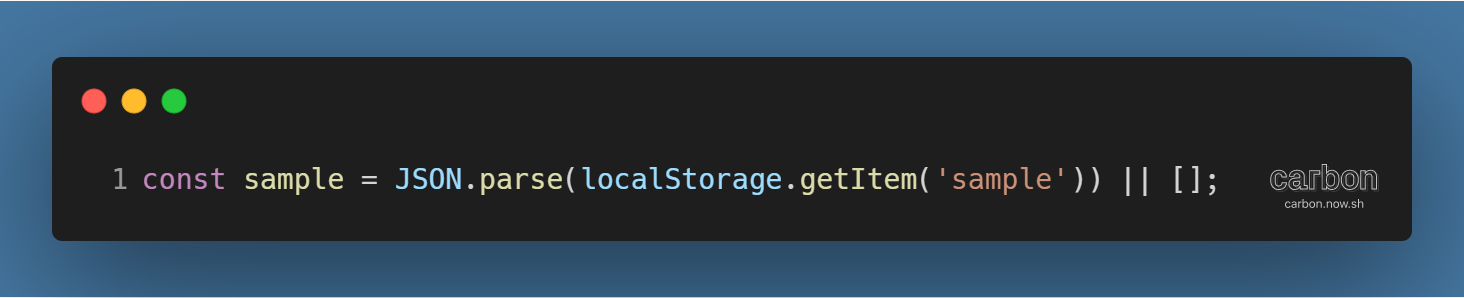 - localStorage 객체에 sample이란 속성이 없을 경우, 변수 sample에 빈 배열을 지정