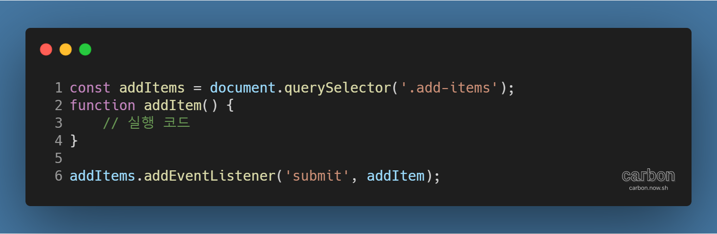 - click 이벤트는 키보드 입력으로 발생하는 submit 이벤트에 반응하지 않는다는 한계가 있음