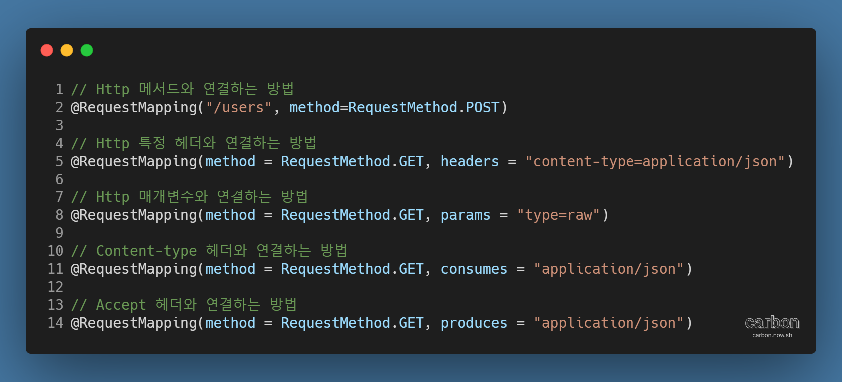 - Http 요청과 이를 다루는 Controller의 메서드를 연결하는 Annotation
