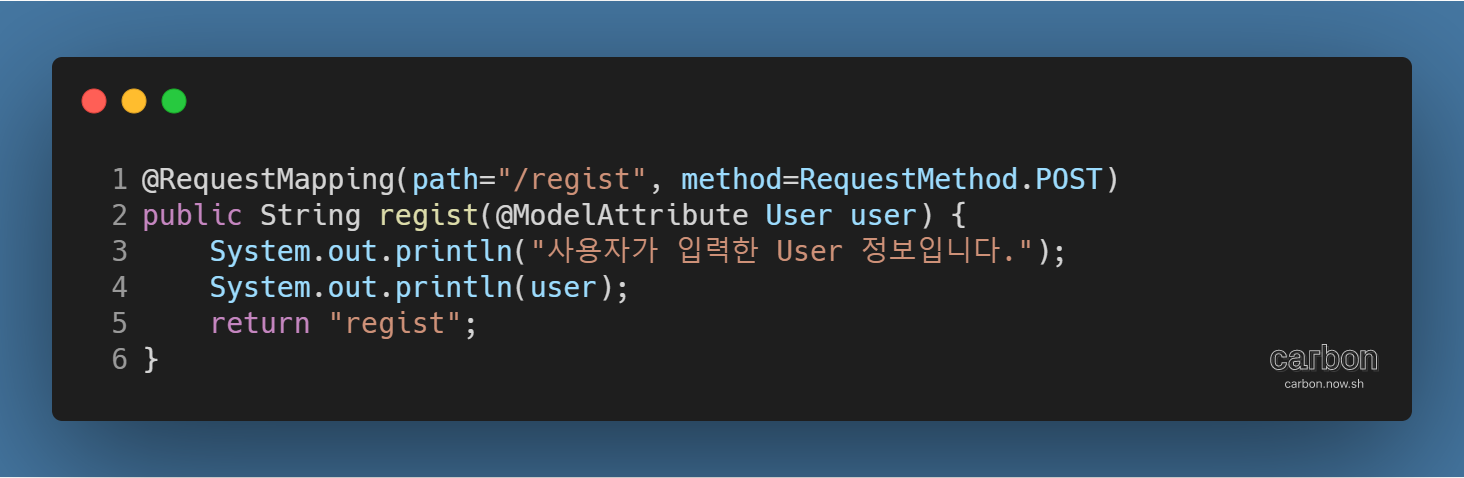 - 메서드의 인자에 @ModelAttribute를 붙여 사용
