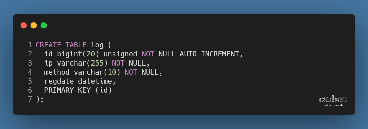- 방명록에 글을 쓰거나 삭제할 때 정보(클라이언트 IP주소, 등록/삭제 시간, 등록/삭제 메서드)를 log 테이블에 저장