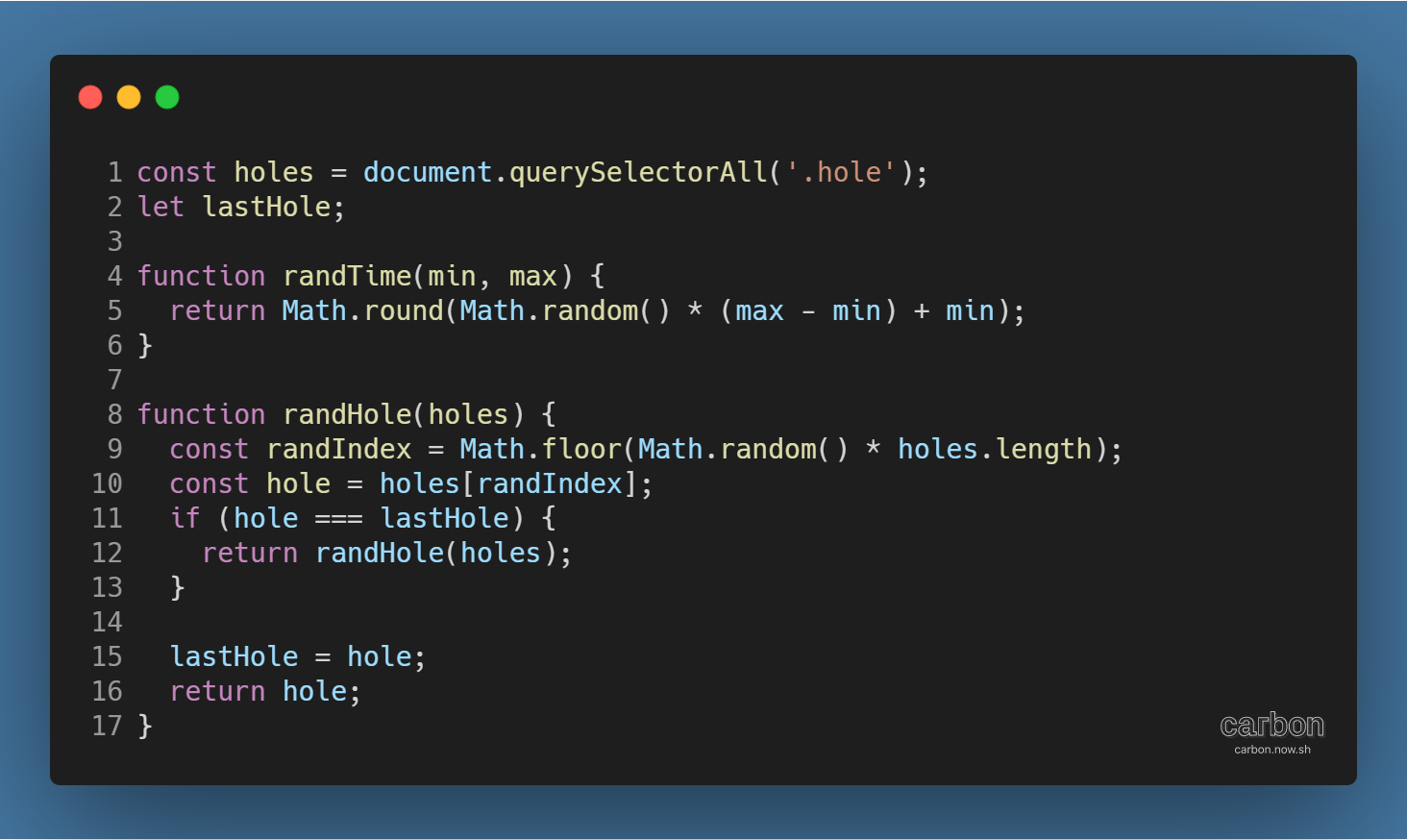 - 구멍의 갯수를 토대로, Math.random( ) 메서드와 Math.floor( ) 메서드를 함께 이용해 무작위 인덱스를 산출