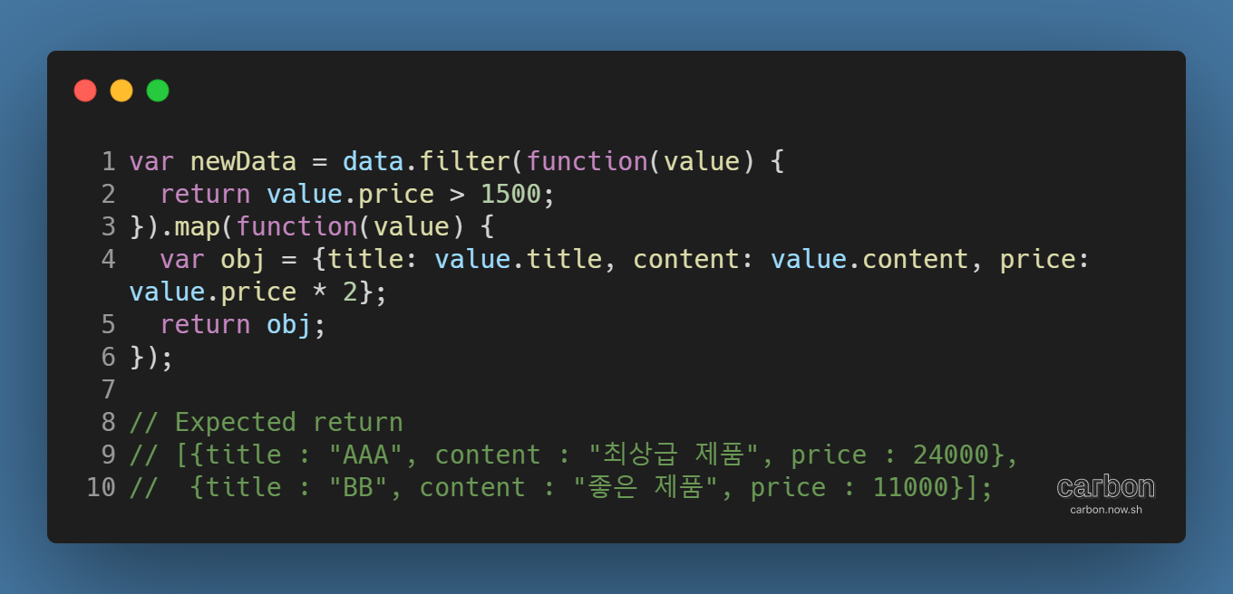 이에 더해, map과 filter 메서드를 복합적으로 활용할 수도 있다.