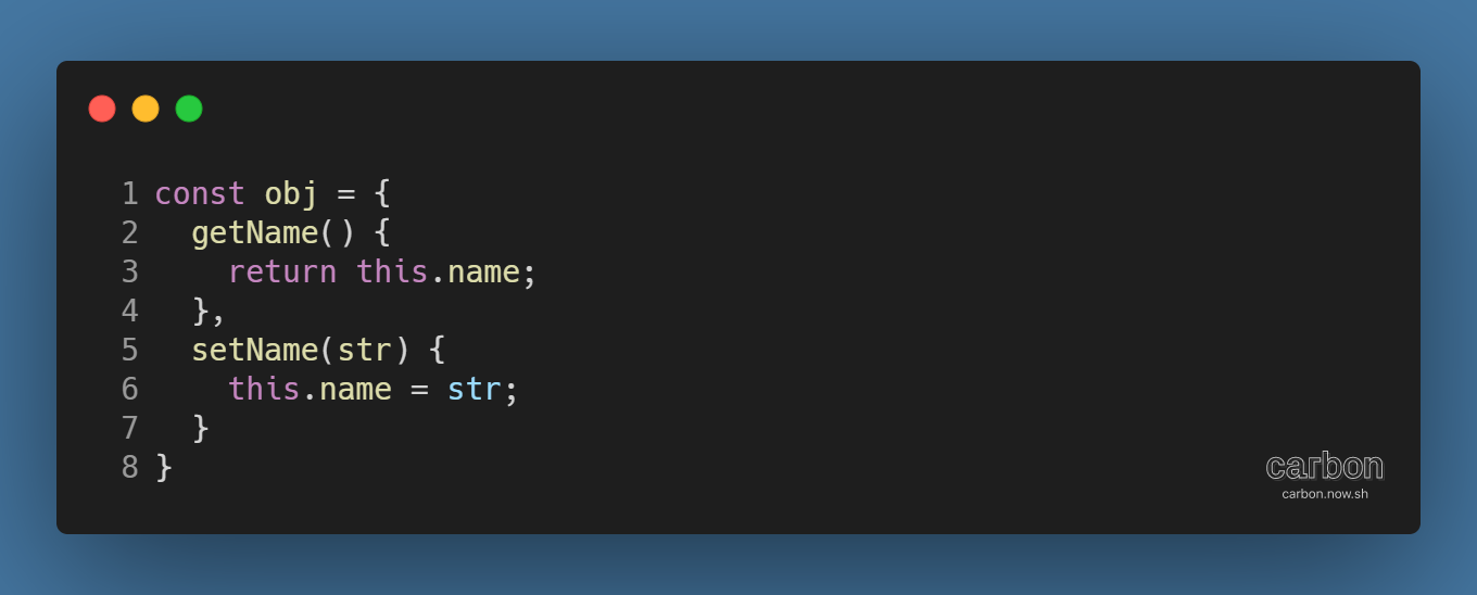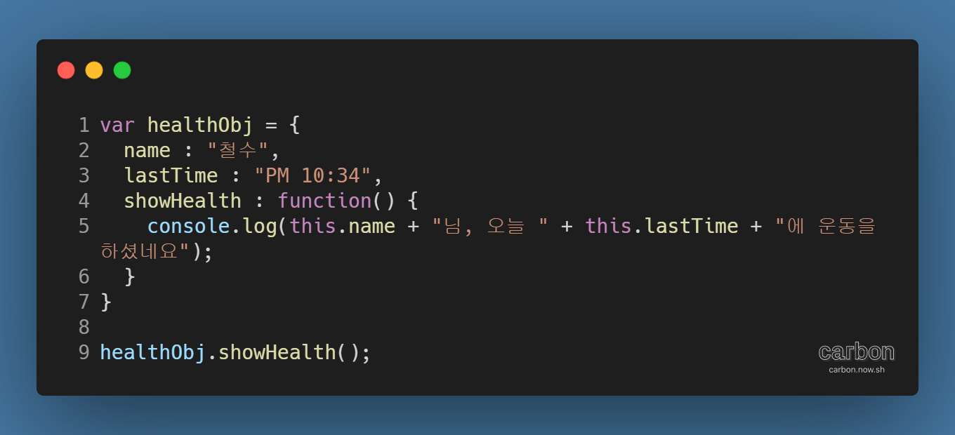 ※ ES6에서는 메서드를 선언할 때 function 키워드 없이 간략하게 작성하는 것이 가능7하다.